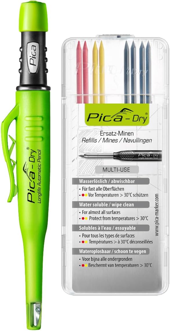 Автоматический строительный карандаш Pica Dry Longlife - это идеальный помощник при разметке различных типов поверхностей. Его используют как домашние мастера, так и профессионалы (электрики, сантехники, монтажники). Эффективная защита от пыли и влаги, эргономичный дизайн, чехол для удобного хранения и использования.