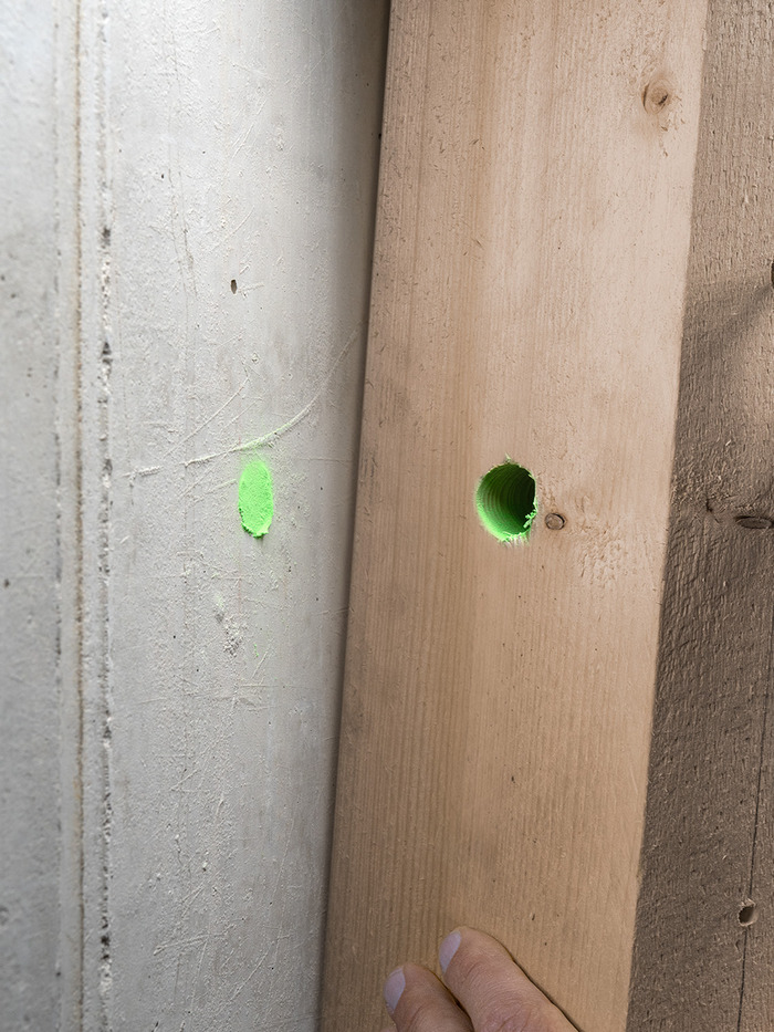 Маркировка точками на основе зеленого флуоресцентного мела.