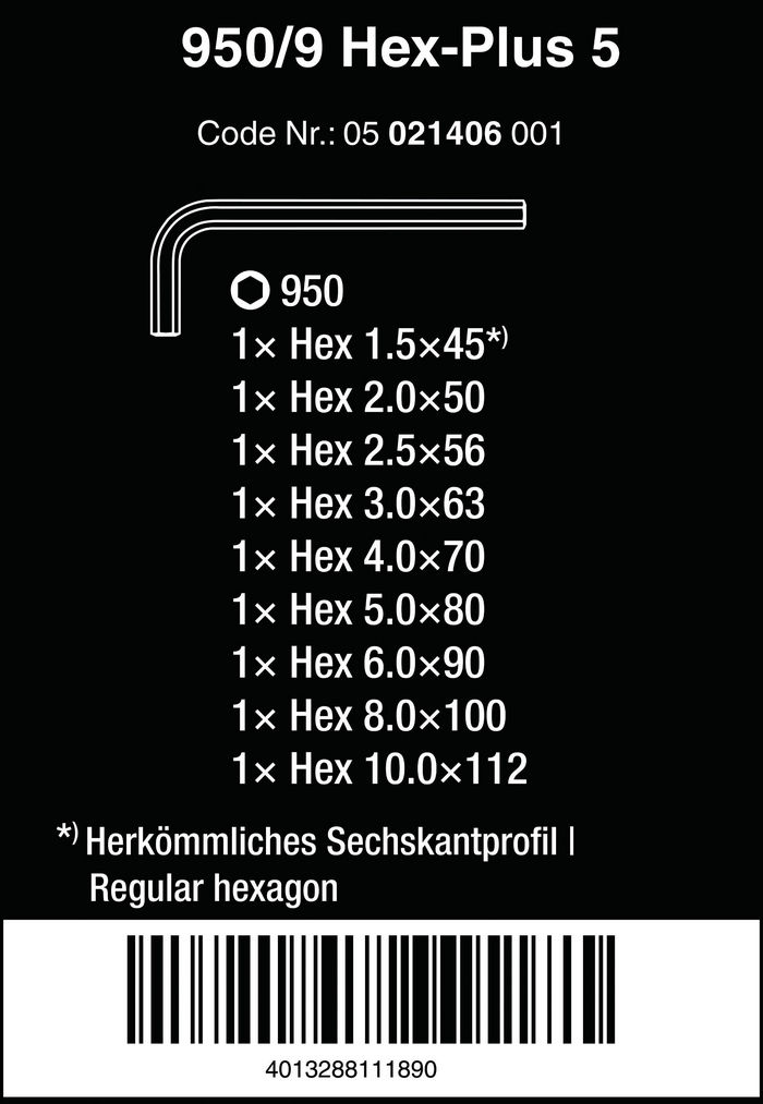 WE-021406 | Набор коротких шестигранников Wera 950/9 Hex-Plus 5